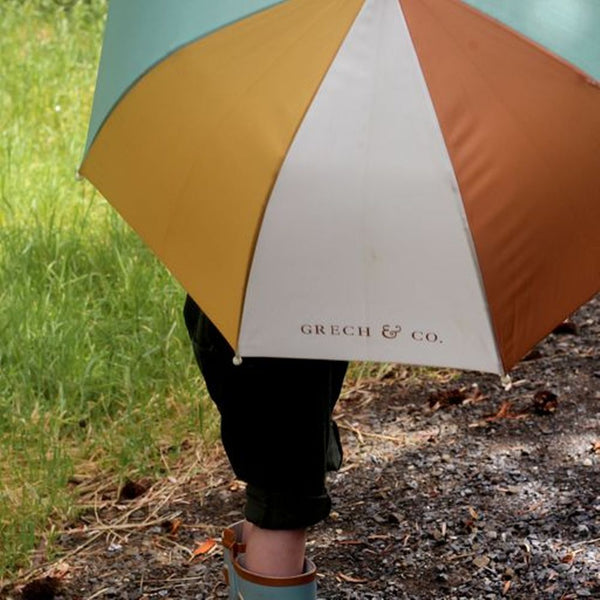 Our kids umbrellas are proudly made with sustainable and eco-friendly materials.The fabric of the umbrella is made from recycled used bottles turned into recycled polyester fabric.The frame of the umbrella is made of fibreglass, offering strength against wind force.Made with a vegan leather finish, the...
