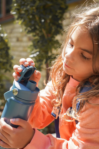 The GRECH & CO. Twist + Go Thermo Water Bottle makes on the go hydration convenient and fun. An attached twist open cap ensures a leak free closure and keeps parts from going missing. With a double vacuum stainless steel wall, drinks hold their temperatures...