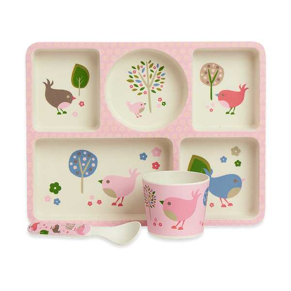 Bamboo Divided Plate Set - Chirpy Bird