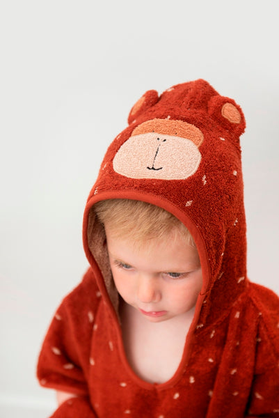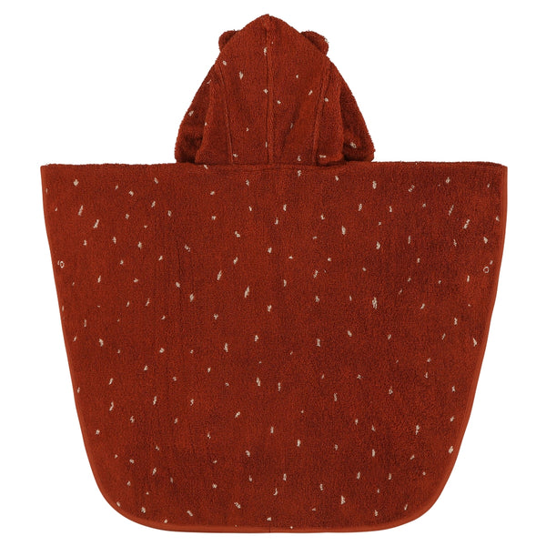 This poncho has a hood and snap buttons to close the poncho below the arms. The outside is a hip, cotton print and the lining is soft, unicolour terry. Perfect to dry after pool or bath time! Composition 100% organic cotton - terry: 90% organic...