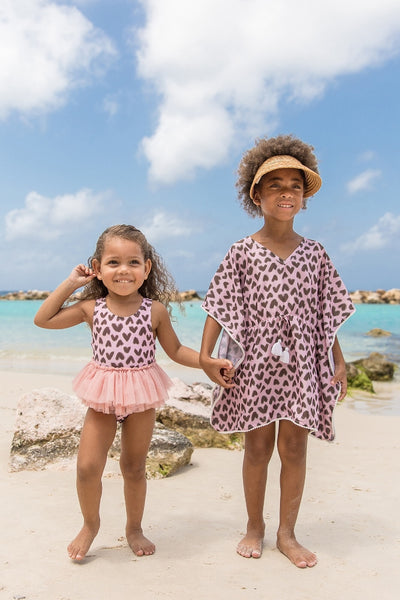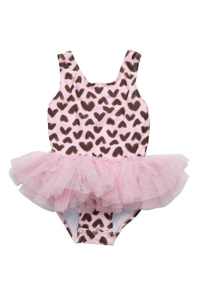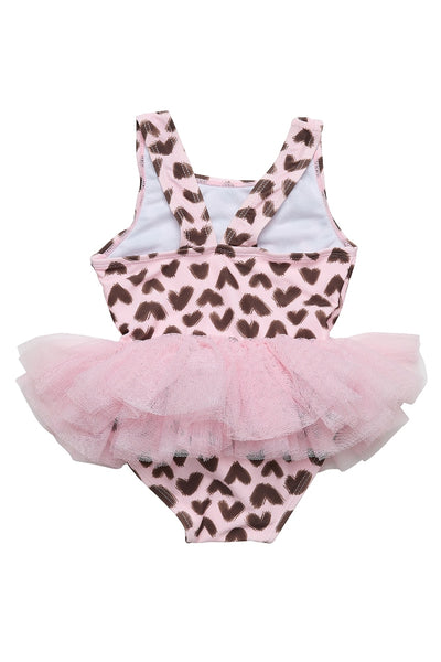 Bring out your inner ballerina in our Wild Love Tutu Swimsuit. The super-girly swimwear piece features leopard print inspired hearts across the front and back plus a gorgeous pink tulle skirt at the waist. Look lovely all day, every day this Summer! UPF50+ sun protection...