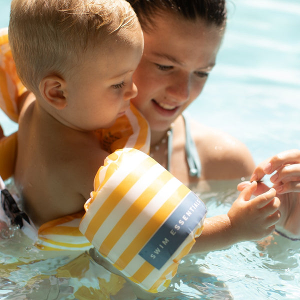 Safe swimming all summer long and also with a stylish puddle jumper, who wouldn't want that for their child? At Swim Essentials we offer the nicest puddle jumpers, including this one with cute whale print and yellow / white stripes! The puddle jumper is suitable for kids...