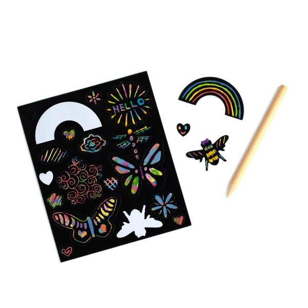 Rainbow & Friends Scratch Paper Stickers feature rainbow geometric and tie dye patterns. Use the included bamboo stick to scratch colorful designs into the shaped stickers. Includes 6 sheets with 108 stickers.  Skills: Helps develop deductive thinking and basic skills.  Age: 5years + Includes: 6...