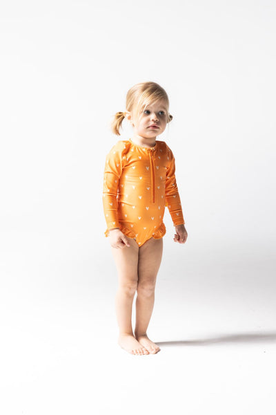 Orange Hearts - Girls Rashguard UPF 50+ Material:-80% Polyester / 20% Elasthane