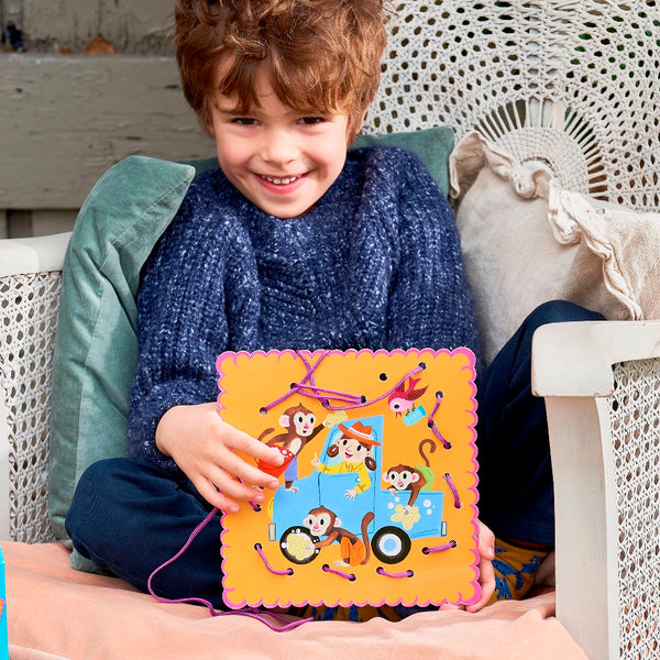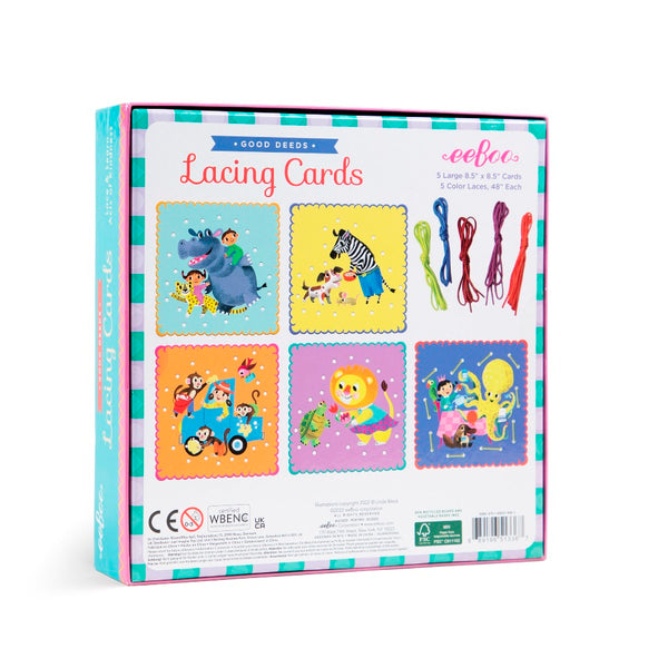 Celebrate kindness and boost fine motor skills with every stitch, in this Good Deeds Lacing Cards set featuring beautiful old-school branding. Invite your child to pick from a choice of 5 soft, colored laces and 5 large, illustrated lacing cards, each depicting a different fun...