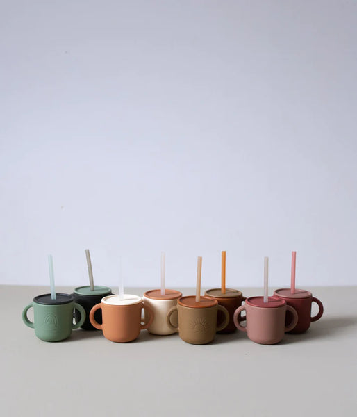 Cute little cups with a handle in comfortable food-grade silicone. The cups are good for strengthening the child's finger motor skills and are stable on the table. The lids are extra deep so that they do not fall out of the cup when it is in use....