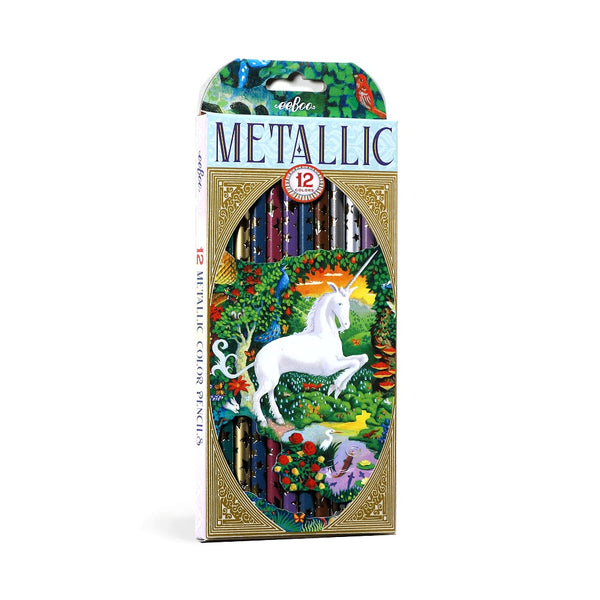 12 metallic pencils to add shimmer to your artwork! For centuries an emblem of purity and grace,The unicorn dwells only in a secret, sacred place.So gather round and contemplate this fabulist's invention,While the beauty of its habitat commands your rapt attention! 12 colors